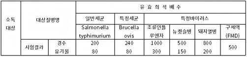 · 세균 : 일반세균(Salmonella typhymurium), 브루셀라(Brucella ovis)